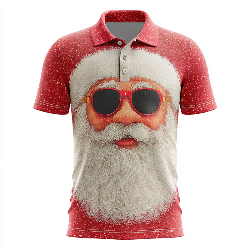 Christmas Men's Santa Claus Polo Short Sleeve Polo Shirts Lapel Casual Holiday Festival Outfit 3D Print Buttons Summer Red 1 Red 3 Red 2