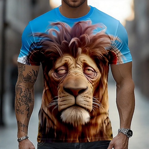 Maglietta da uomo divertente con leone che fa il gesto della mano a forma di cuore, maglietta grafica con segno d'amore in 3D, manica corta, girocollo, casual, abbigliamento, abbigliamento S M L XL