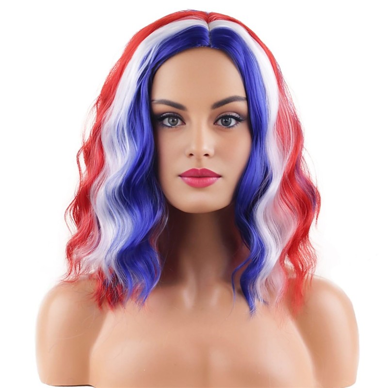 American 250 4th of July Flag Wig for Women Short Curly Red White and Blue Costume Wigs for Independence Day Cosplay Party