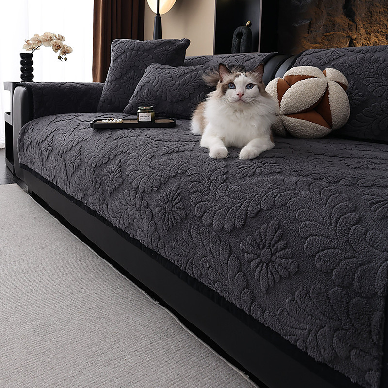 Luxury Thick Autumn Winter Sofa Cover, Anti-Slip, Anti-Scratch Comfort Cotton Velvet, 3D Jacquard Sofa Cushion Protector with Backrest Cloth