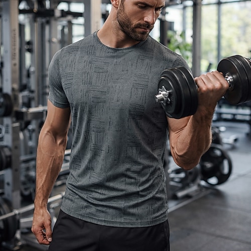 Per uomo T-shirt da corsa Maglia a compressione Maglia atletica Sport in alto Manica Corta Top Estate A quadri Asciugatura Rapida Traspirante Allenamento in Palestra Camminata Jogging abbigliamento