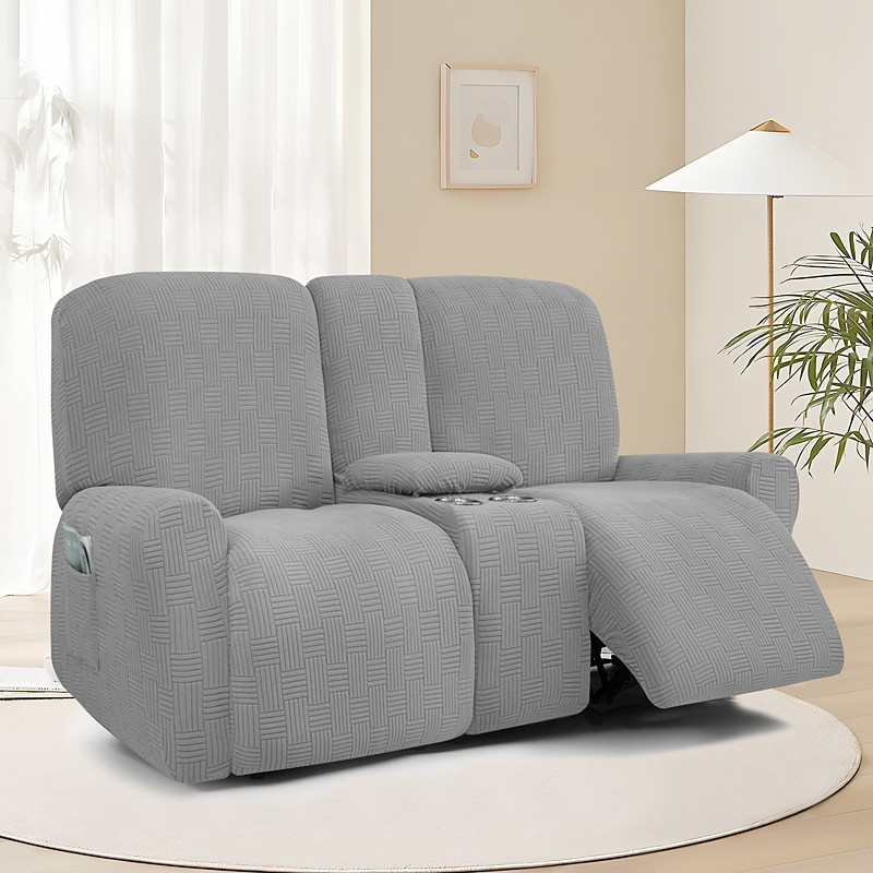 Recliner Chair Cover with Cup Holders - 5x5 Grid Stitch Design, Modern Lounge Chair with Low Back for Living Room or Home Theater
