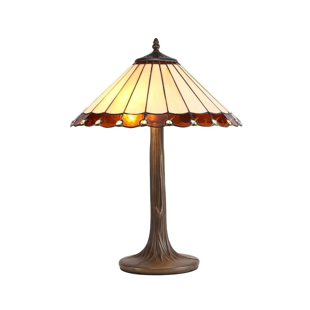 Sleek 2 Light Tree Like Table Lamp E27 With 40cm Tiffany Shade Amber/Cream/Crystal/Aged Antique Brass Luxuria