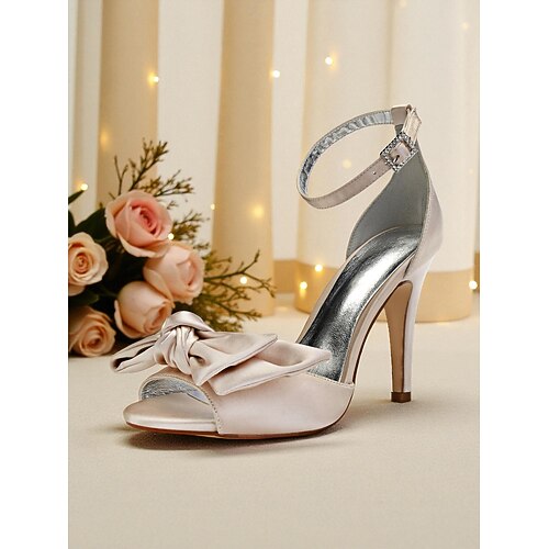 sandali da sposa eleganti con cinturino alla caviglia e tacco a spillo da donna, scarpe da sposa con tacco alto e punta aperta per la sposa, tacchi da cerimonia bianchi minimalisti