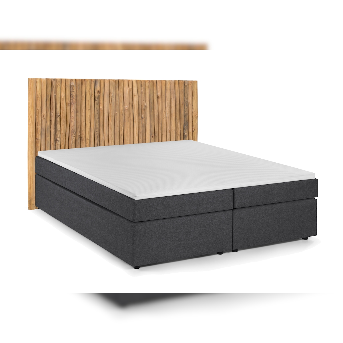SIT Möbel Boxspringbett 180x200 cm | inkl. Matratzen + Topper | Kopfteil Teak | Stoffbezug | B 220 x T 205 x H 120 cm | 18006-02 | Serie THIS & THAT