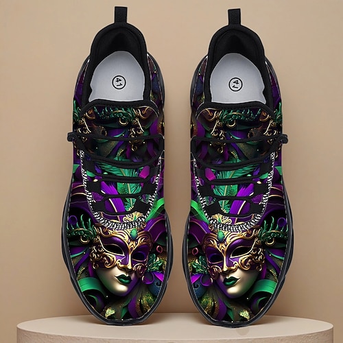 Sneakers da uomo con tema maschera di carnevale: design artistico in similpelle, ideali per vivaci celebrazioni di carnevale e festival musicali