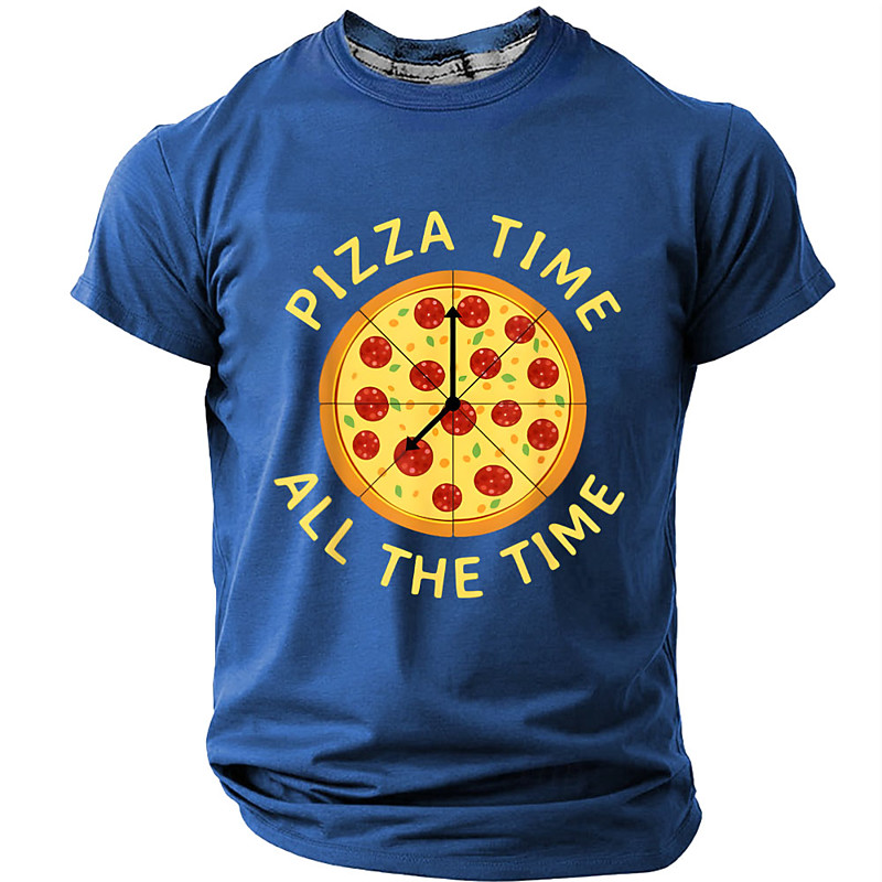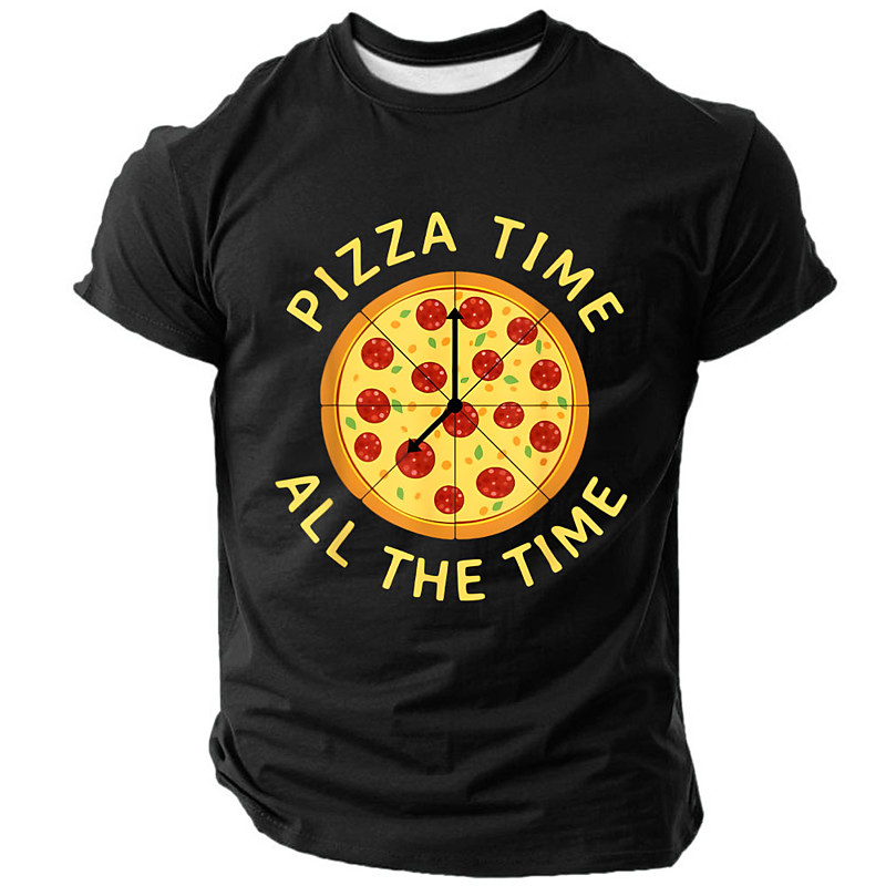 Men's Graphic T-Shirt Short Sleeve, Pizza Time All The Time Hobbies Lifestyle Tee
