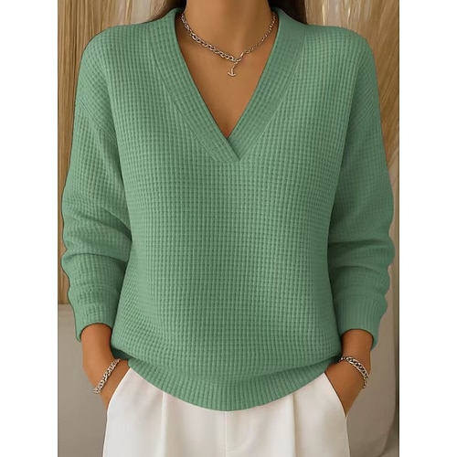 camicia da donna a griglia waffle elegante vintage quotidiano rosa vino blu marrone verde primavera autunno inverno