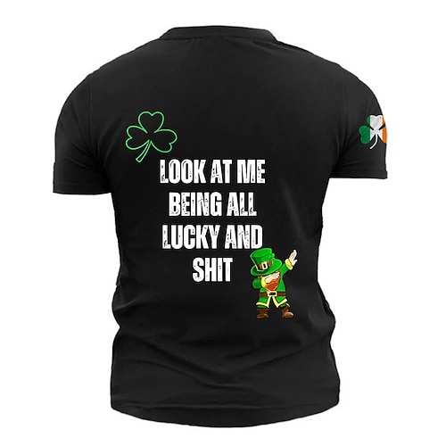 Festa di San Patrizio Per uomo Quadrifoglio Divertente Stampa lettera Maglietta 100% Cotone Manica Corta Grafico Camicia Nero Maglietta comoda Vacanza Streetwear Abbigliamento di stilista
