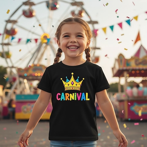 100% Cotone Carnevale Bambini Ragazze Blu Nero Bianco Grafico Tiare e coroncine Martedì grasso Maglietta Girocollo Manica Corta Vacanza Sport Outdoor Abbigliamento Quotidiano Vacanza Streetwear