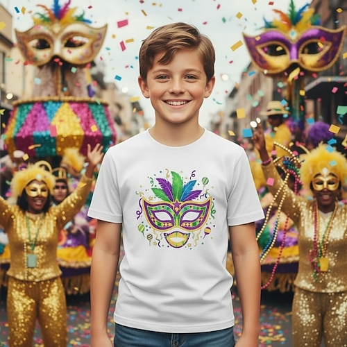 Cotone 100% Cotone Carnevale Bambini Ragazzi Blu Nero Bianco Grafico Maschera Martedì grasso Maglietta Blusa Girocollo Manica Corta All'aperto Abbigliamento Quotidiano Moda Streetwear Designer Stampa