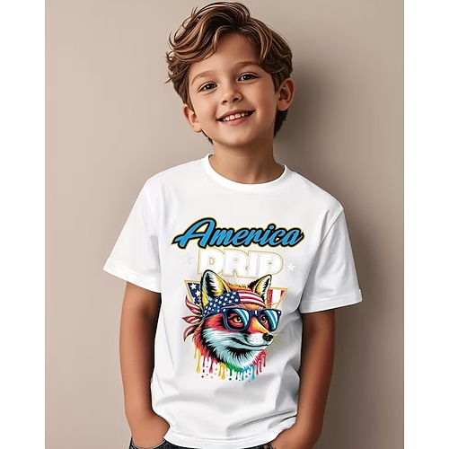 100% Cotone Bambini Ragazzi Nero Bianco Bandiera Volpe 250° anniversario Maglietta Blusa Girocollo Manica Corta All'aperto Abbigliamento Quotidiano Moda Streetwear Designer Stampa Estate