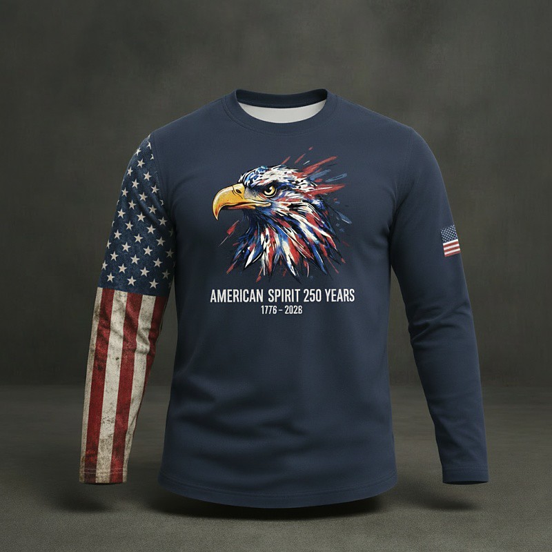 America's 250th Anniversary Men's Graphic Flag Eagle T Shirt Tee Top Long Sleeve Shirt Long Sleeve T shirt 3D Print Crew Neck Shirt Fashion Daily Basic Daily Vacation Street Navy Blue Khaki Army Green
