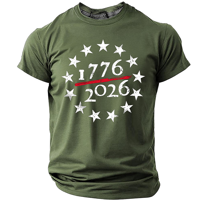 America's 250th Anniversary Men's American US Flag 1776 T Shirt Short Sleeve T shirt 3D Print Crew Neck Shirt Daily Military Daily Street Blue Black Green Summer Spring Clothing Apparel S M L XL XXL