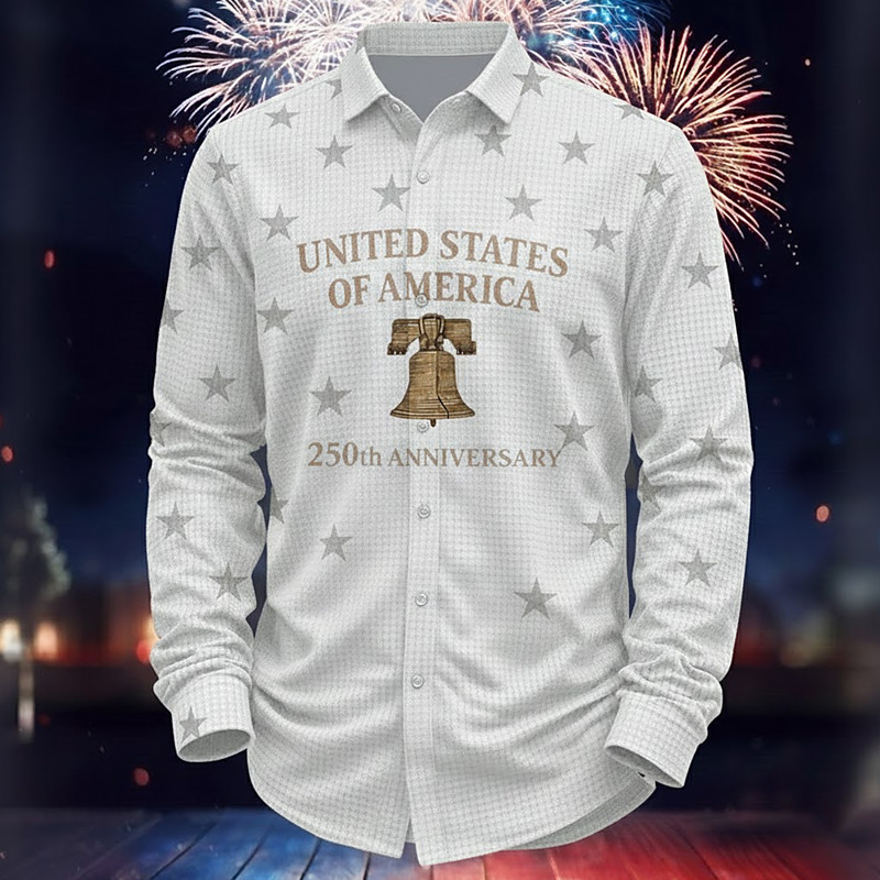 Men's Patriotic Freedom America's 250th Anniversary Shirt Waffle Shirt Casual Shirt Long Sleeve Vintage Retro Dailywear Holiday Summer Spring Turndown 3D Print Textured Button Up Shirts White Red
