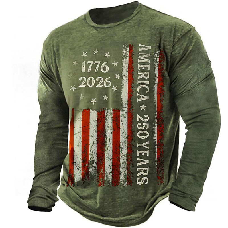 America's 250th Anniversary Men's American US Flag T Shirt Long Sleeve T shirt 3D Print Crew Neck Shirt Daily Designer Simple Casual Daily Street Blue Black Green Summer Spring Fall Clothing Apparel