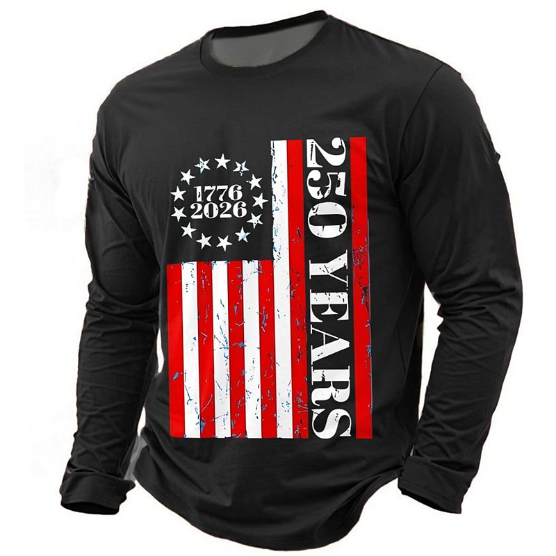 America's 250th Anniversary Men's American US Flag 1776 T Shirt Long Sleeve T shirt 3D Print Crew Neck Shirt Daily Casual Daily Travel Party Blue Black Red Summer Spring Fall Clothing Apparel S M L