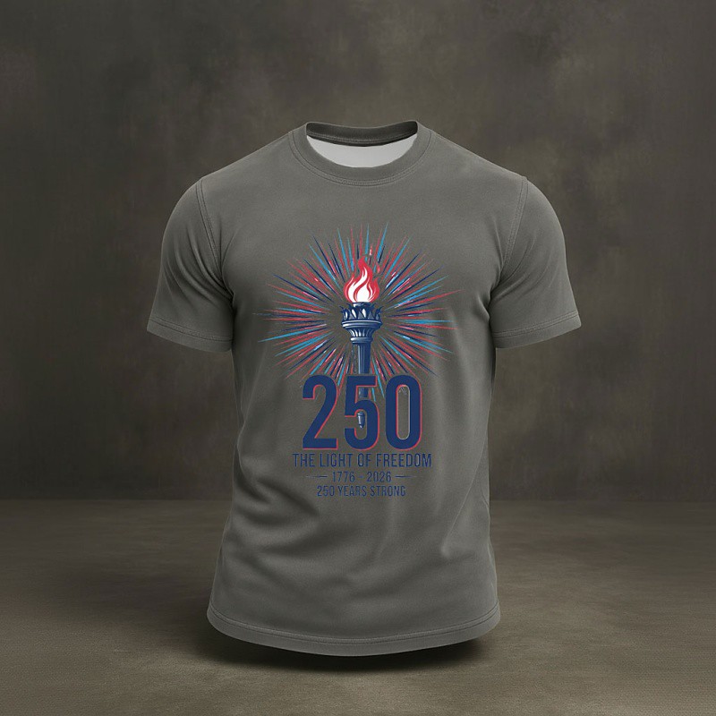 America's 250th Anniversary Men's Graphic Torch T Shirt Short Sleeve Shirt Tee Top Short Sleeve T shirt 3D Print Crew Neck Shirt Fashion Daily Basic Daily Vacation Street Burgundy Navy Blue Khaki