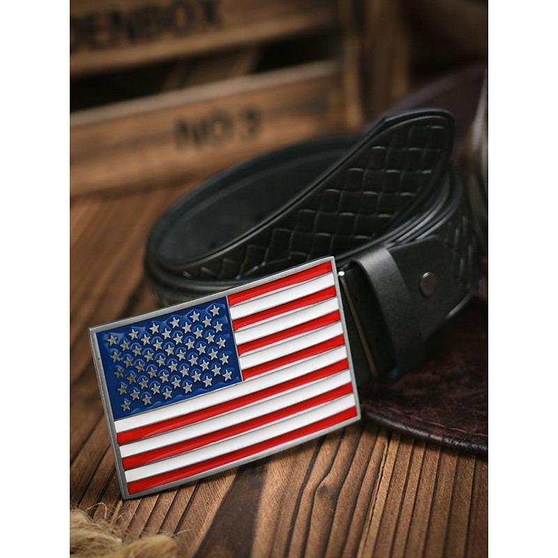 Men's Embossed Faux Leather Belt with American Flag Buckle, Multiple Colors, Patriotic Casual Style for Independence Day and U.S. 250th Anniversary Celebrations