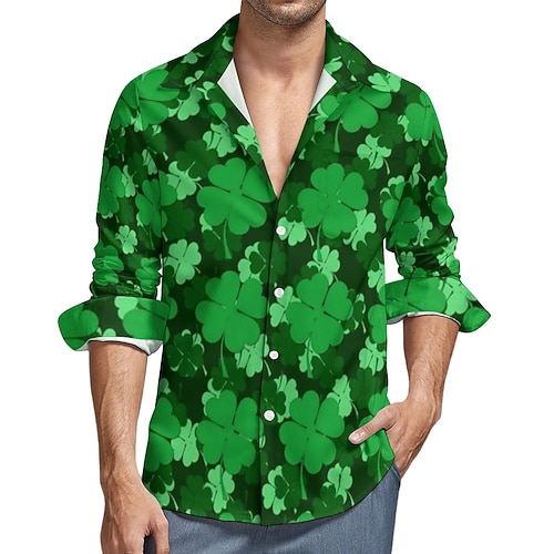 camicia serafino da uomo per la festa di San Patrizio t-shirt grafica trifoglio bandiera nazionale festa di San Patrizio abbigliamento stampa 3D quotidiano stampa abbottonata a maniche lunghe per la