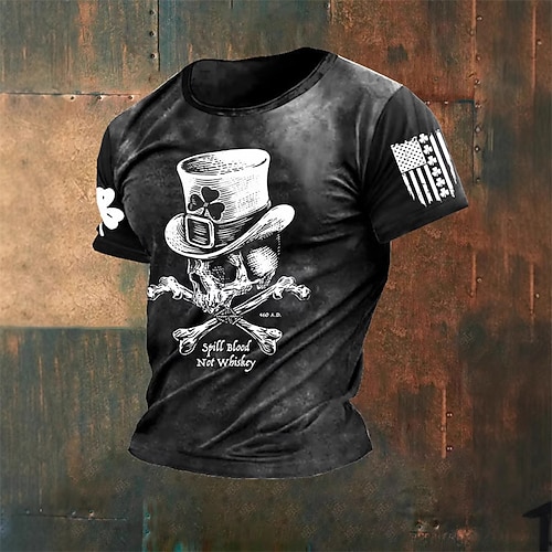 Giorno di San Patrizio San Patrizio Festa di San Patrizio Per uomo Trifoglio Bandiera Americana Teschi Maglietta Manica Corta maglietta Stampa 3D Girocollo Camicia Sport Moda Designer Quotidiano