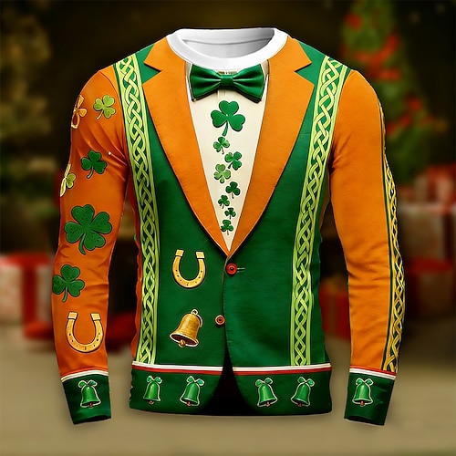 San Patrizio Per uomo Trifoglio Irlandese fortunato Smoking Maglietta Manica Lunga maglietta Stampa 3D Girocollo Camicia Designer Casual Club Feste Ferie Rosso Arancione Estate Primavera Abbigliamento