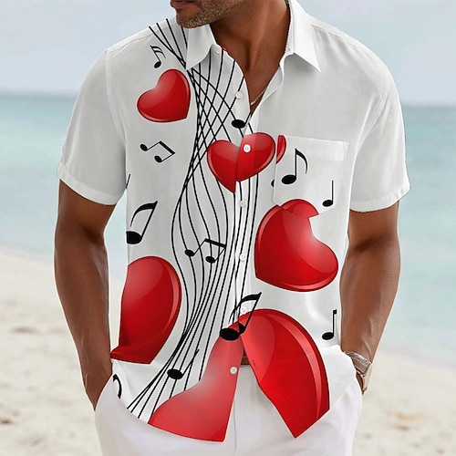 San Valentino Per uomo Note Musicali A cuore Rosa Camicia Camicia Estiva Camicia con Bottoni Manica Corta Casual Festival Musicale Ferie Estate Primavera Collo ripiegato Stampa 3D camicie con