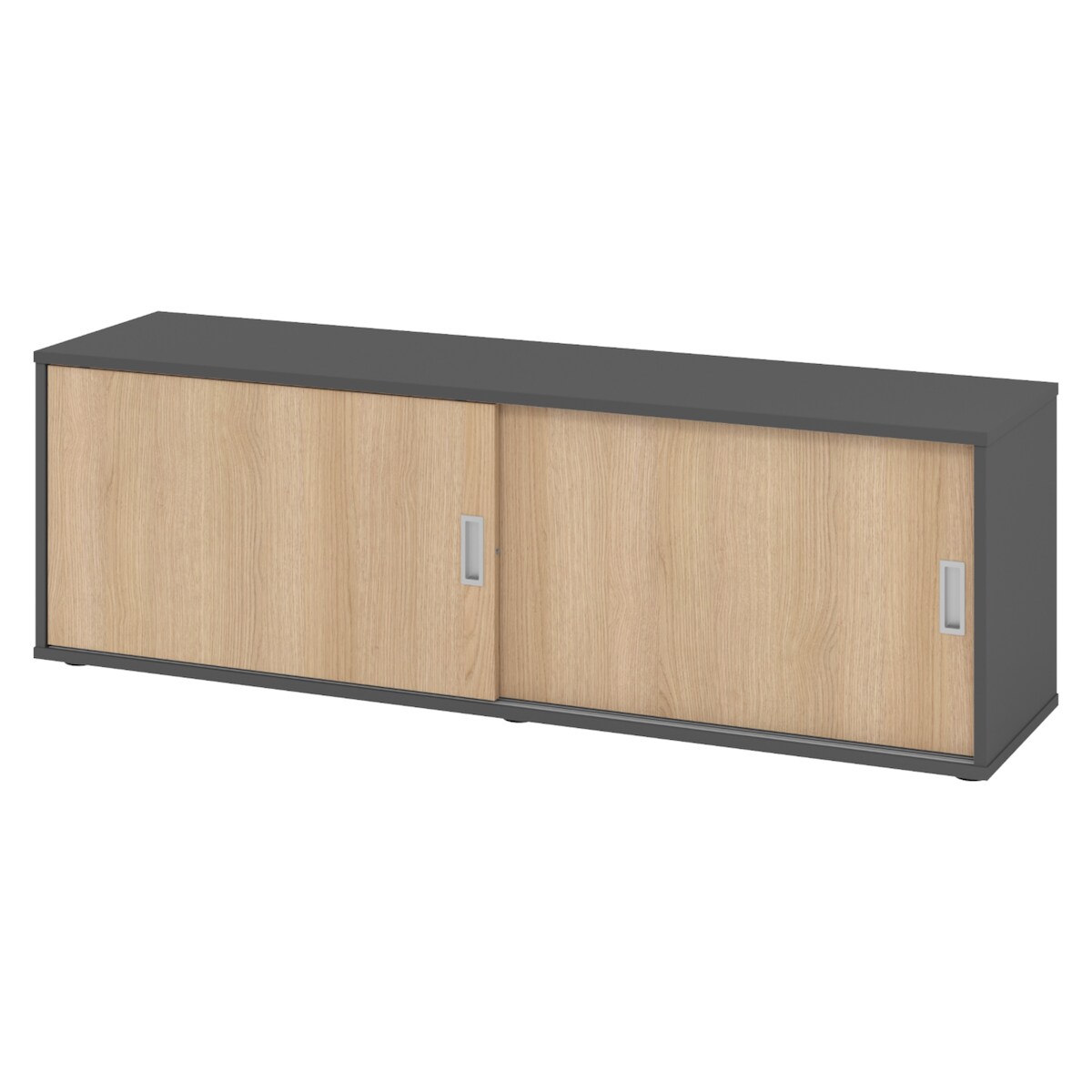 bümö Lowboard Schiebetürenschrank in Graphit/Eiche - Büromöbel Sideboard aus Holz, 160 cm breit, Büroschrank nur 40 cm schmal, Büro Schrank mit