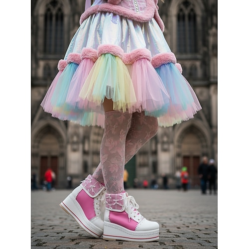 stivaletti da donna con zeppa arancione e rifiniture in pizzo – scarpe cosplay con risvolto per costumi di carnevale, cosplay anime e feste a tema