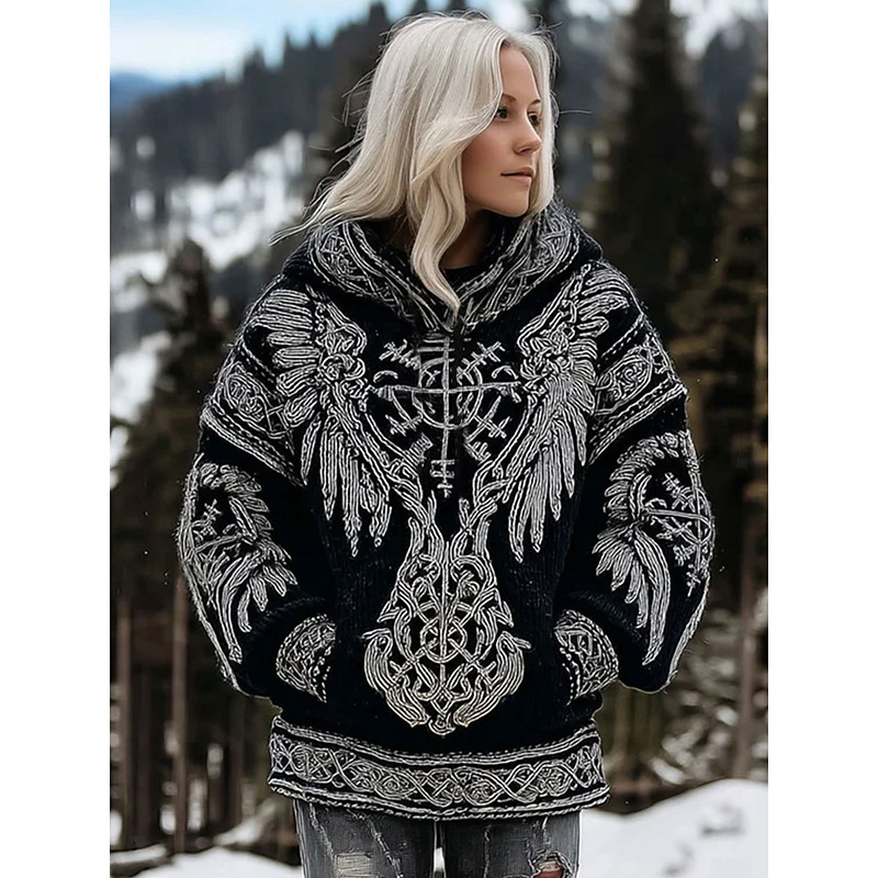 Women's Zip Up Hoodies Tribal Streetwear Casual Comfy Long Sleeve Hooded Regular Tops Street Holiday Going out Zip Up Print Black Yellow Red Gray Fall