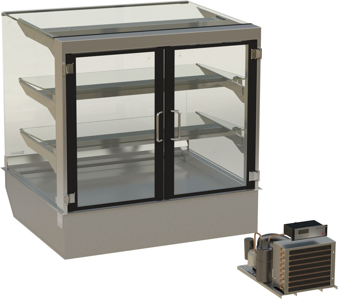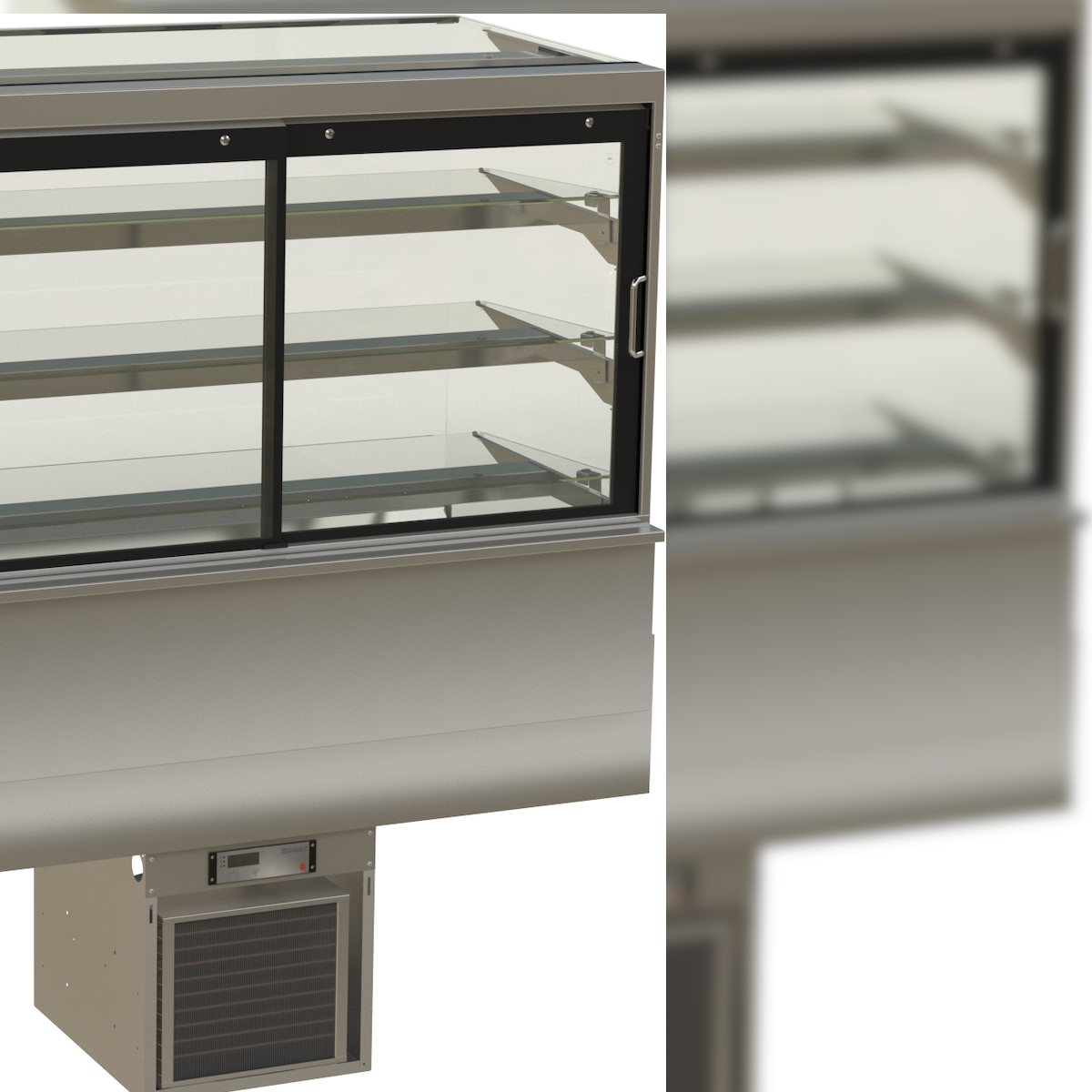 HAGOLA Showcase "Malmö" eckig, mit Tortenauszug, für 3 Kuchenbleche, 4 Auslagen 1330x910/265+410x778mm (BxHxT) steckerfertig mit Transporthalterung