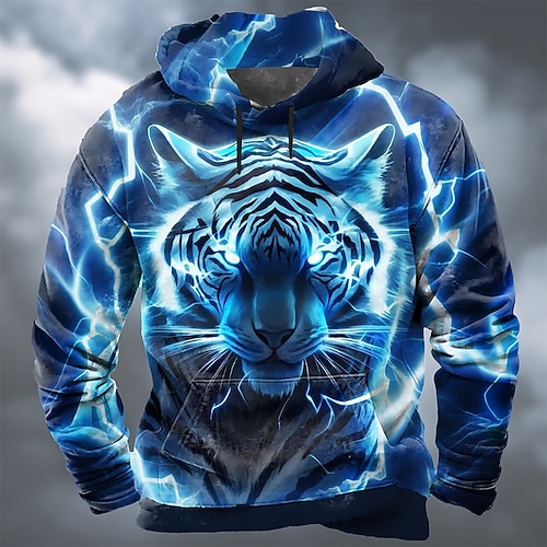 Per uomo Tigre 3D Reverie Felpa con Cappuccio Felpa Cool Manica Lunga Girocollo Club Abbigliamento casual alla moda Blu Verde Coulisse Autunno Inverno progettista S M L XL XXL XXXL