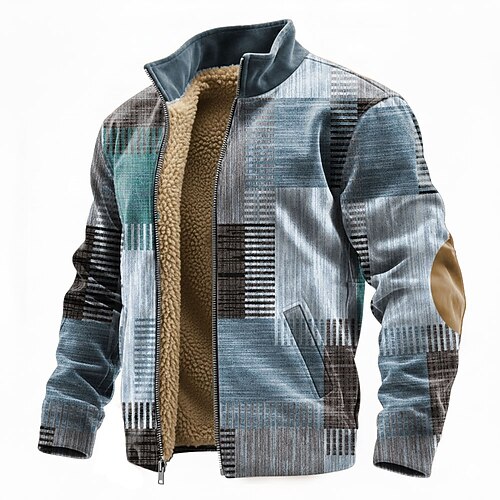 Per uomo Geometrico Plaid Pile Giacca di pelle Felpa Moda Quotidiano Semplice Casual Collo alla coreana Con cerniera All'aperto Vacanza Regalo Uscire Blu Marrone Verde Grigio Tasca Cerniera frontale