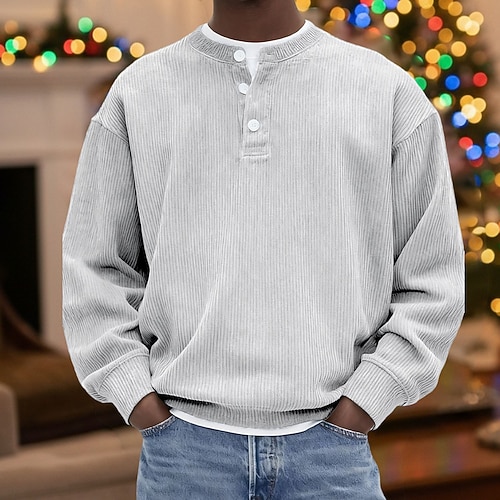 Per uomo Camicia di Velluto a Coste Maglia Henley Maglietta Manica Lunga Tinta unica Semplice Moda Designer Casual Cardigan con Bottoni Henley All'aperto Casuale Quotidiano Autunno Inverno Tutte le