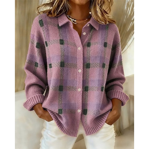 Per donna Felpa Cardigan Elegante Moda Streetwear Tinta unica Plaid Colletto a Camicia Patchwork Bottoni Lavorato a maglia Manica Lunga Top Regolari Maglia Quotidiano Casa All'aperto Blu Verde chiaro
