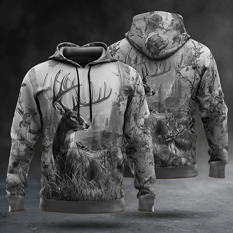 Men's Deer Hoodie Sweatshirt Fashion Classic Long Sleeve Crew Neck Outdoor Hunting White Brown Gray Gray 2 Drawstring Fall Winter Designer S M L XL XXL XXXL