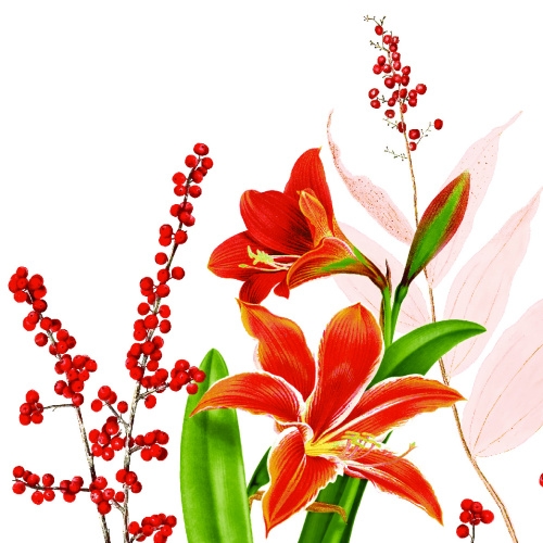 Airlaid Serviette Felina, 40 x 40 cm, 50 Stück - Mank - Floral Amaryllis Ilex-Zweige