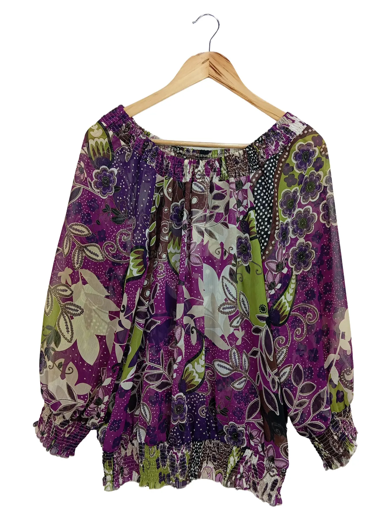 STREET ONE Stoffhose "Style Emee" Sommerhose mit elastischem Bund und Tunnelzug, mit grafischem Muster arona blau 42, Länge 26