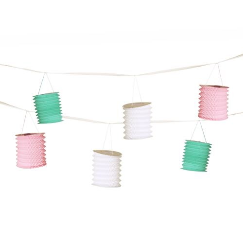 Papstar 15 X Deko-Girlande 3,6 m weiss/mint/rosa "Pastel" mit 8 Laternen