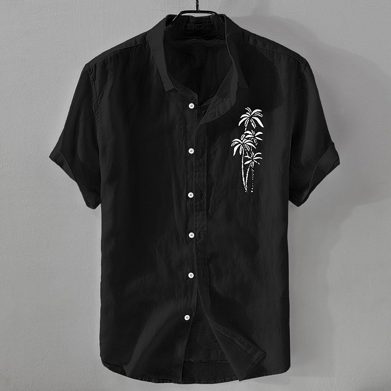 Men's Shirt Linen Shirt Summer Shirt Beach Shirt Button Up Shirt Coconut Tree Vacation Casual Black White Light Green Pink Short Sleeve Turndown Summer Clothing Apparel