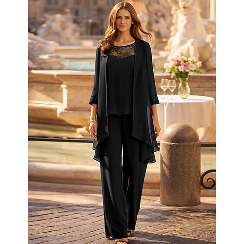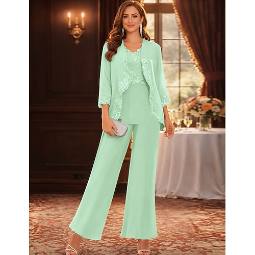 Completo pantaloni lunghezza pavimento abito madre della sposa manica lunga collo a giro elegante semplice invitato al matrimonio con colore solido