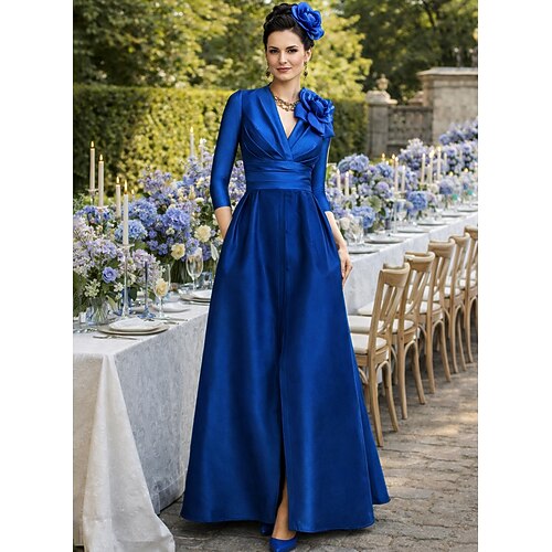Linea ad A Sirena Tromba Tubino Colonna Lunghezza al pavimento Abito da invitata a nozze Abito Formale Abito da sera Abito da cerimonia per signora Manica 3/4 Mezza Manica Scollo a V Collo gioiello