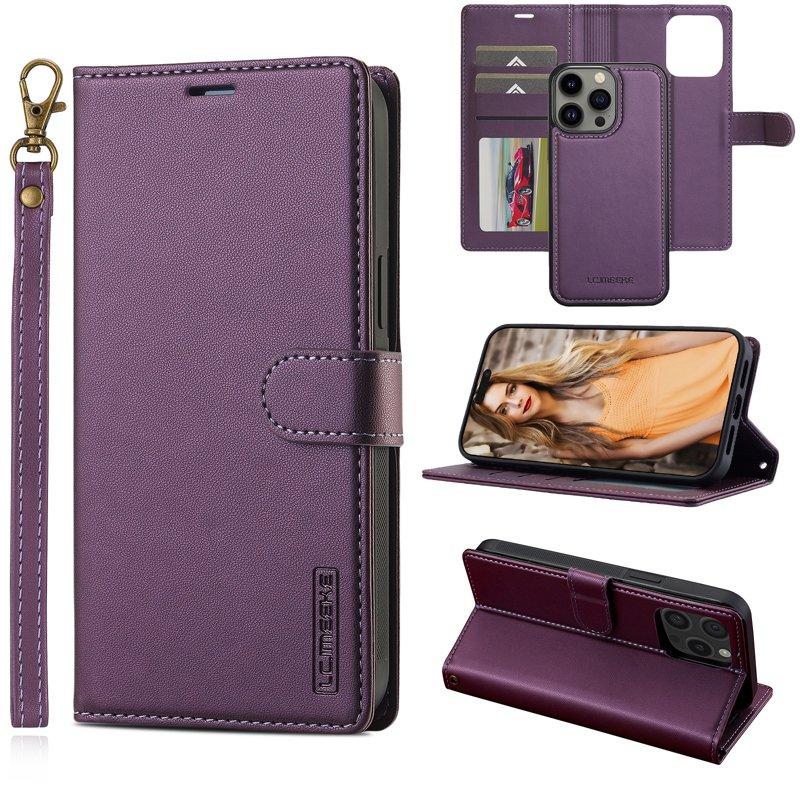 LC.IMEEKE L2 Series iPhone 15 Pro Plånboksfodral Konstläder - Lila