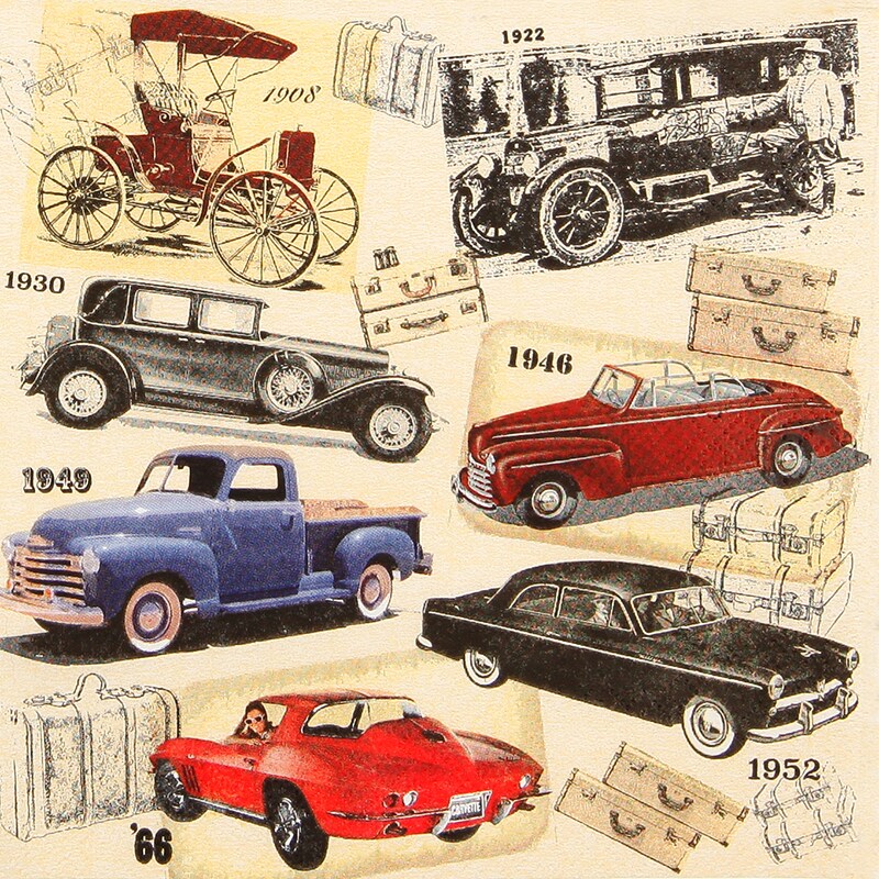 Home Fashion, Classic Cars, Lunch-Servietten aufgefaltetes Maß 33 cm x 33 cm, im Viertelfalz, 20 Stück pro Pack