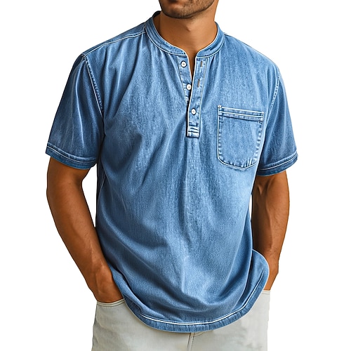 Per uomo Maglia Henley Maglietta Manica Corta Semplice Retrò Vintage Casual Cardigan con Bottoni Lavato Henley Casuale Estate Rosa Blu chiaro Viola Maglietta Henley