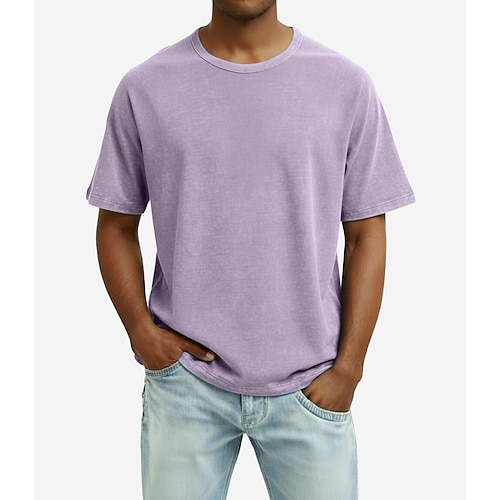 Per uomo Maglietta Manica Corta Girocollo Estate Primavera Tutte le stagioni Tinta unica Vintage Casual Divertente Stile Vintage Lavato Casuale Quotidiano Streetwear Blu Grigio Viola Maglietta Top