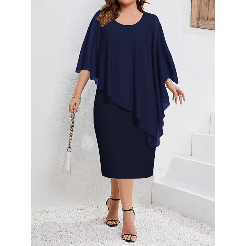 Women's Plus Size Casual Dress Solid Color Crew Neck Long Sleeve Summer Spring Elegant Fashion Modern Casual Midi Dress Daily Holiday Dress