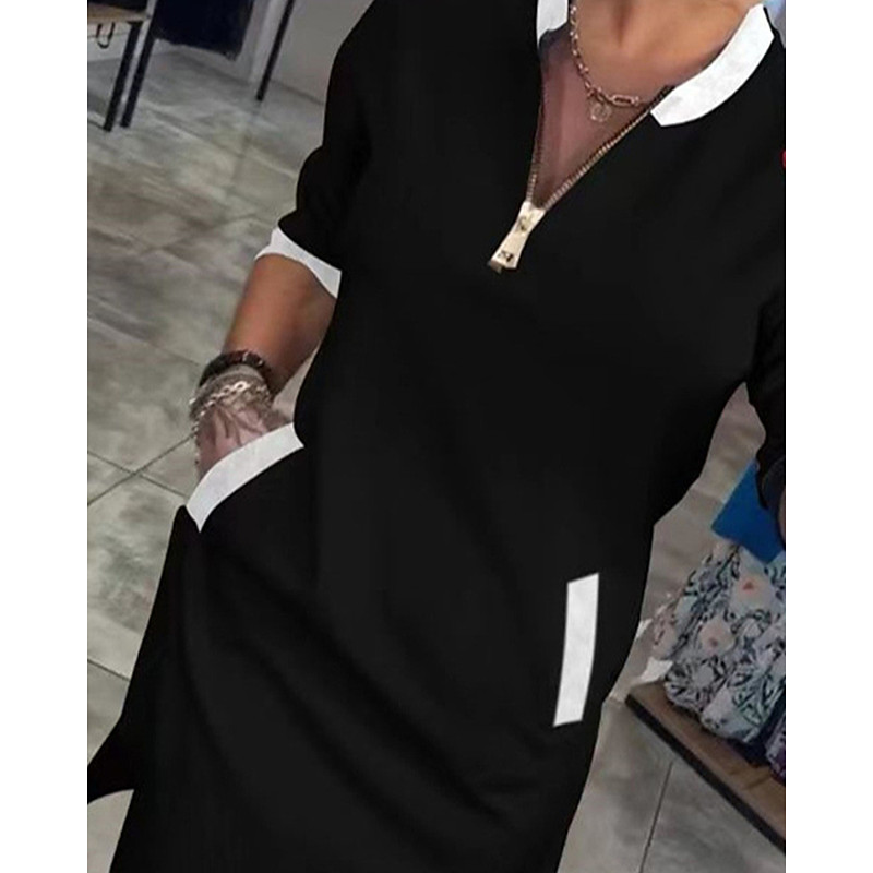 Women's Mini Dress Casual Dress Modern Daily Going out Weekend Regular Fit Color Block 3/4 Length Sleeve V Neck Black White Khaki Gray Spring Fall