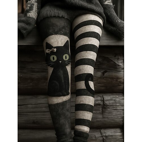 Leggings da donna Vacanza Moda Vintage Lunghezza Totale Alta Vita Grafica Gatto Stampa Astratta Termica Calda Morbidi Traspiranti Elasticizzati Formali Esterno Vacanza Nero e Bianco Nero Grigio Scuro