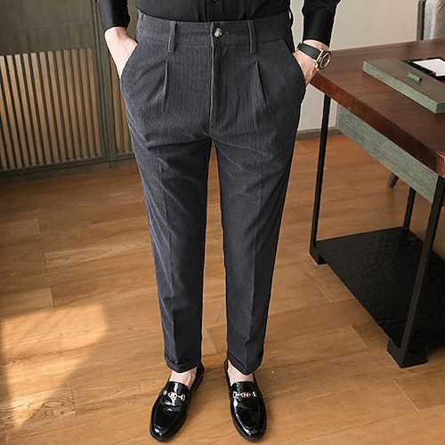 Per uomo Pantaloni Eleganti Pantaloni in velluto a coste Pantaloni Chinos Tasca Bottoni Semplice Comodità Formale Feste Lavoro Moda Stile Classico Nero Blu Micro-elastico